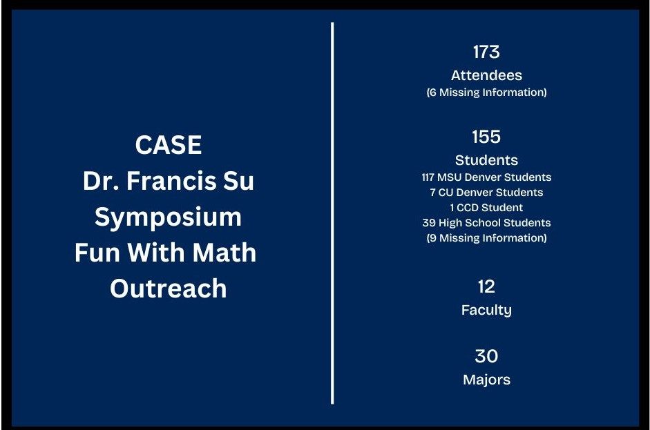 Dr. Francis Su is the author of “Mathematics for Human Flourishing.” This book discusses the many ways mathematics can be more than just numbers. What is particularly interesting about Dr. Su’s book is how it helps many readers reframe their own negative experiences in mathematics. It shows how everyone can do mathematics, because mathematics goes beyond equations and theorems. In a very concrete way, Dr. Su helps the reader cognitively reframe their beliefs around math. Mathematics is framed as a subject that can be explored; it not only changes the world, but it changes the person. Christopher Jackson is an inmate that corresponds with Dr. Su and their correspondences are included in the book. Mathematics is framed as something transformative, and this is starkly illustrated by Christopher and his personal journey. The consistent themes of growth and beauty make the book an excellent choice for the math anxiety workshop run by Rob Niemeyer in Department of Mathematics and Statistics. The therapeutic impact of the text is felt by anyone who has ever struggled with math or anyone who has known someone to struggle with math. Everyone who has read this book comes away feeling more connected with mathematics and less isolated in their frustration around the subject. It is for this reason that we encourage all MSU Denver students to attend Dr. Su’s plenary talk on November 6th, 3:30 p.m. – 5:30 p.m. in St. Cajetan’s.
