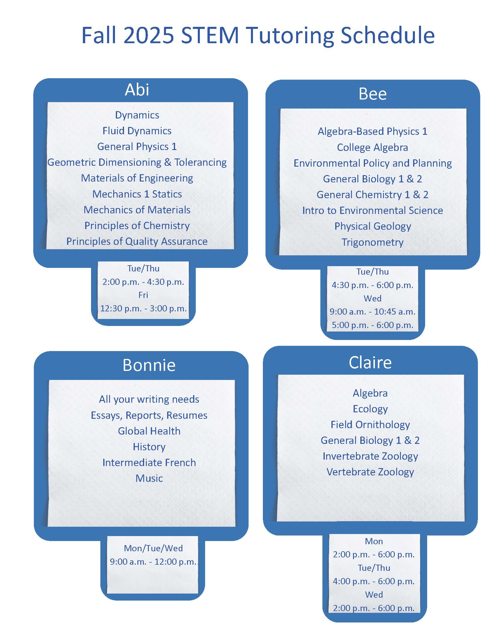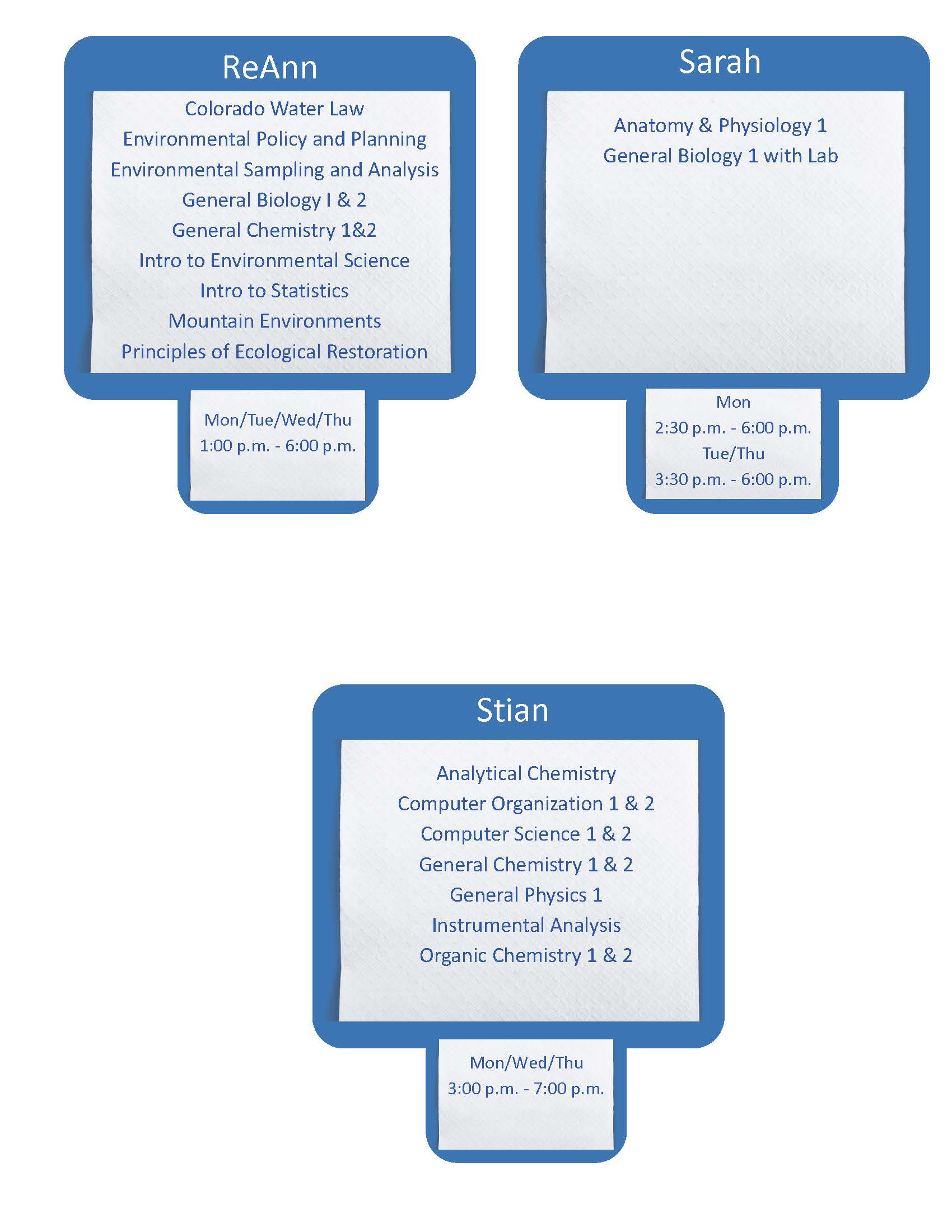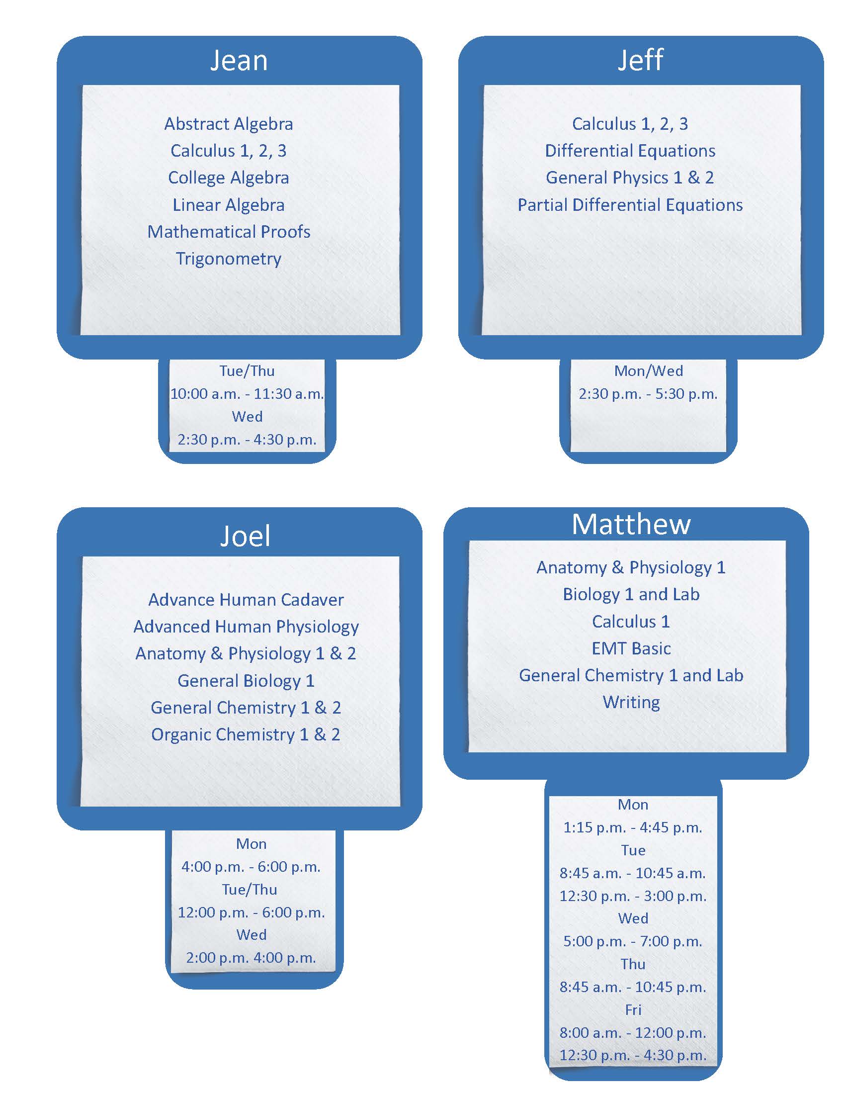 Classes Tutored: