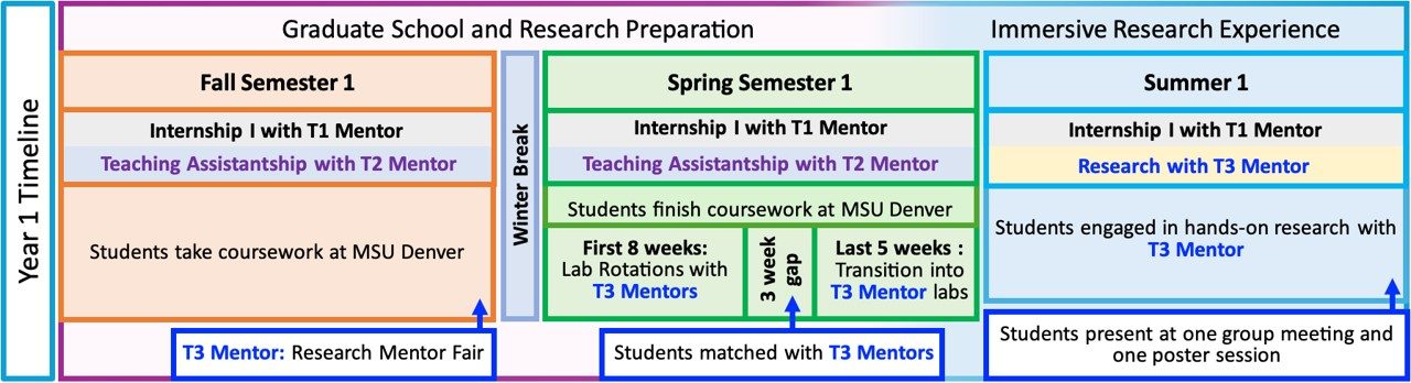 Our ACS-BP students gain invaluable experience and insight through a combination of coursework and hands-on mentored research with a principal investigator at a partnering graduate institution. Throughout the program, students create and iteratively refine a poster and an oral presentation on their research project. Regular presentations of student work are scheduled at MSU Denver and partnering institutions. The ACS-BP culminates in a capstone project wherein the students prepare a thesis or publication-quality document on their research and present their final poster and oral presentation to a panel of program mentors.