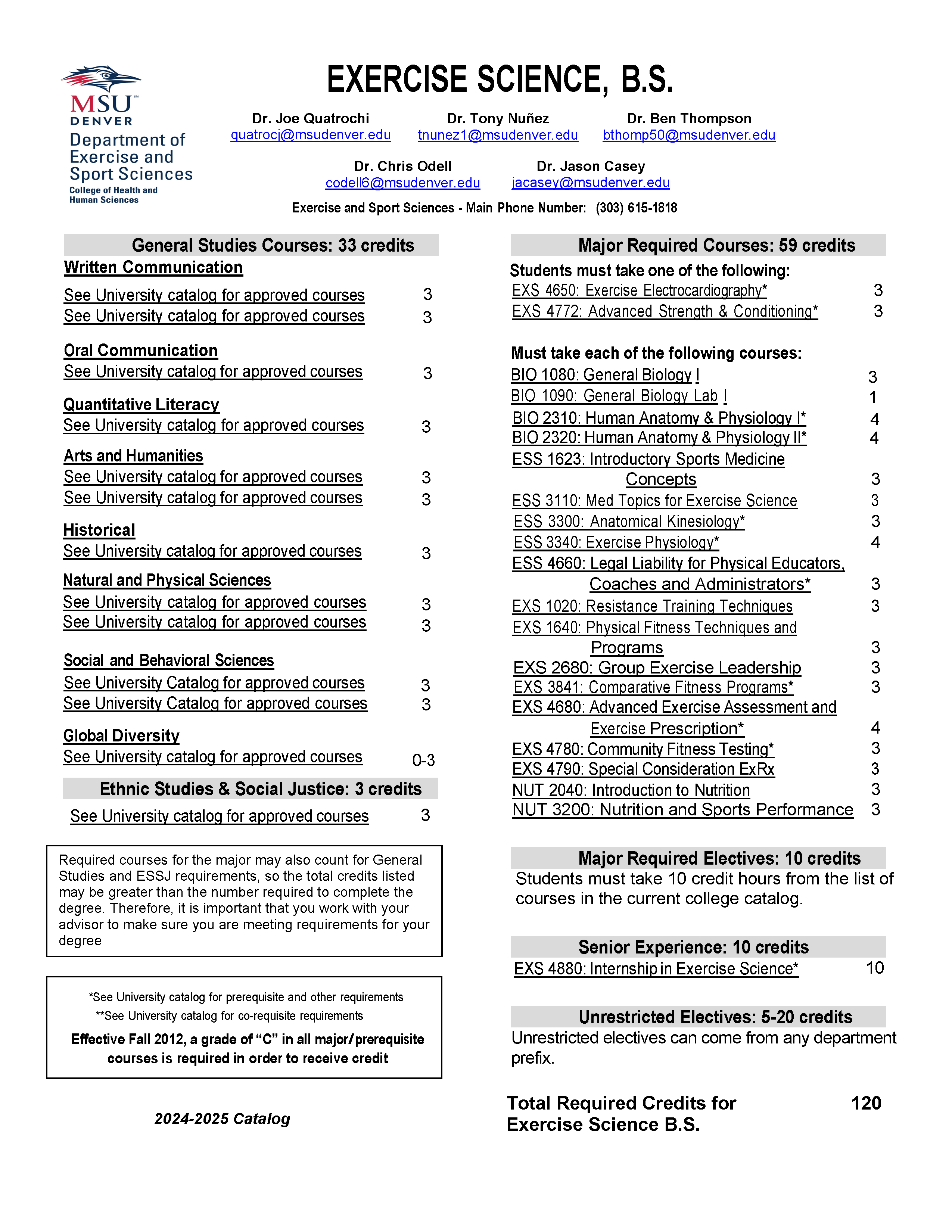 For a printable list of these course requirements, click here: Exercise Science 2024-2025 Degree Requirements