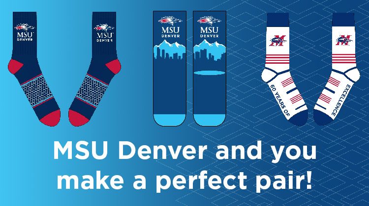 During the seventh annual Socktober, we’re jumping feet-first into a season of celebration that includes MSU Denver’s 60th anniversary and the final year of the Roadrunners Rise campaign! For every gift of $25 ($15 is tax-deductible) you make to any of our student support service funds through the month of Socktober (October) – you will receive your choice of one pair of limited-edition MSU Denver socks AND one pair of socks will be donated to Rowdy’s Corner and distributed to a student in need.